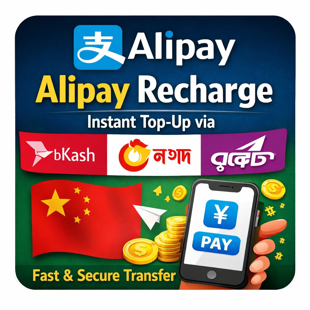 Easily recharge your Alipay account from Bangladesh using Bkash. Get instant top-up by transferring directly to your Alipay email or phone number. Perfect for shopping, sending money, or paying bills in China. Safe, fast, and reliable.