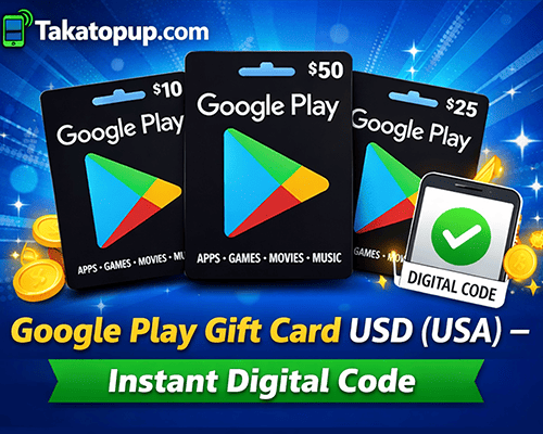 Google Play Gift Card USD (USA) allows you to add balance instantly to your USA Google Play account and purchase apps, games, movies, books, and subscriptions directly from the Google Play Store.